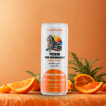 Fuel your body and mind with Tiger Pre-Workout Energy Drink, a premium blend crafted to deliver clean and lasting energy. Each can combines saffron, ginger, green tea extract, vitamins B3, B6, B12, pink Himalayan salt, sea salt, and natural orange peach flavor — creating a refreshing taste with powerful performance benefits.